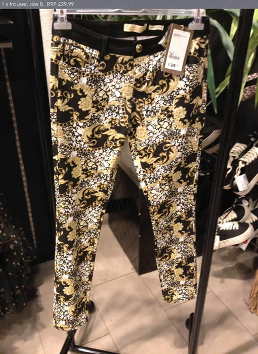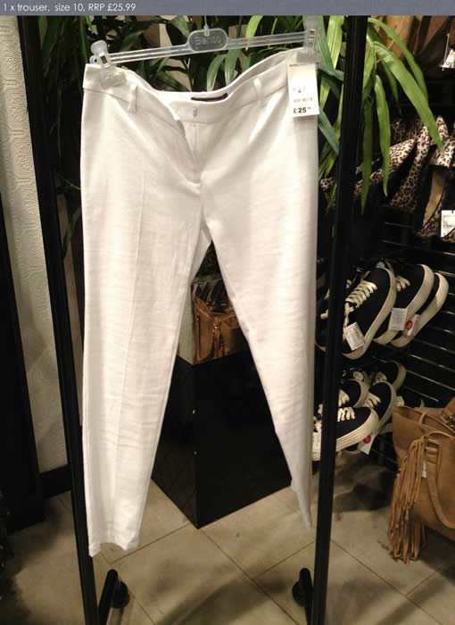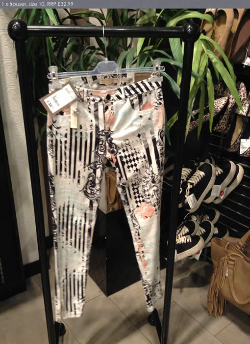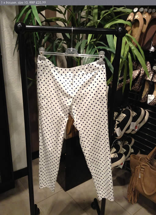 Yellow/ black patterned trousers White trousers black spot