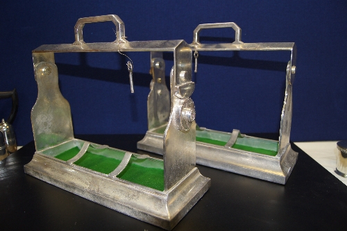 2 Silver Plated Tantalus Decanter Holder With Lockable Head With Key |