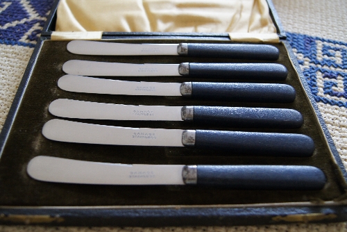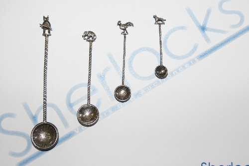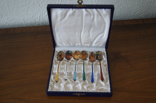 Blue box containing 6 coloured spoons Denmark Sterling |