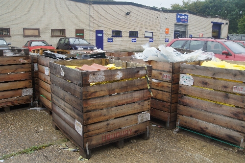 2 Pallets corrugated plastic8 metal baskets of new and used plastics
