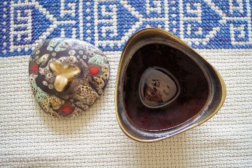 3 Glass And Pottery Drinking Vessel With Lids. W.Kainer |