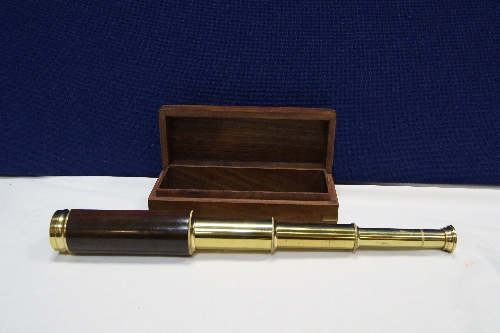 Wood And Brass Extendable Eyeglass In Wooden Case |