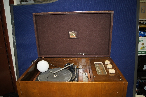 Used Garrard Auto Turntable In Cabinet With Cables And Valves Not Fully Connected |