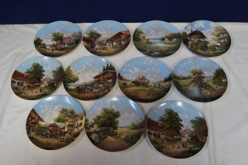 Collection Of Plates Total 11 German including bor der schmiede teller no N7263, Uuslauf der Fischer teller no C1786, Rast im Gasthof no G9329, Die Bauernhochzeit no D3771, Die Bauernhochzeit no B5071, Unkunft der Bostkutsche no G2063, Sonntagsausflug mit der Rutsche no B3243, Erntezeit in den Feldern no E6618, Waschtag am Dorfbrunnen teller no D1757, Das Ungelvergnugen teller no E1274, Uuf dem Weg Bum Markt teller no B654, |