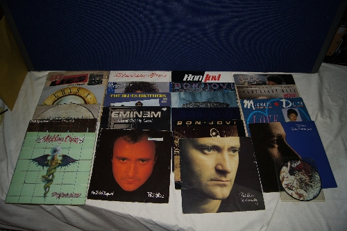 Used Collection Of 21 12" Vinyl Records And 1 7" Vinyl Single including Meat Loaf Dead Ringer for Love 7" single, Phil Collins Hello, I must be going album, Phil Collins No Jacket Required, Phil Collins But Seriously, Michael Jackson and Diana Ross Love Songs, 2x Michael Jackson pluys the Jackson Five 18 Greatest Hits, Michael Jackson Thriller, Eminem Cleanin Out My Closet, The Blues Brothers Original Soundtrack, Whitney Houston Whitney, Status Quo The Anniversary Waltz, Motley Crue Dr Feel Good, Phil Spector Echoes of The 60's, Whitesnake Whitesnake Picture Disc, Guns n Roses Sweet Child O' Mine 12" single, GN'R Lies Album, Bon Jovi Bon Jovi Album, Bon Jovi Lay Your Hands on Me 12" Single, Bon Jovi New Jersey Album, Bon Jovi Slippery When Wet Album, Bon Jovi Never Say Goodbye |