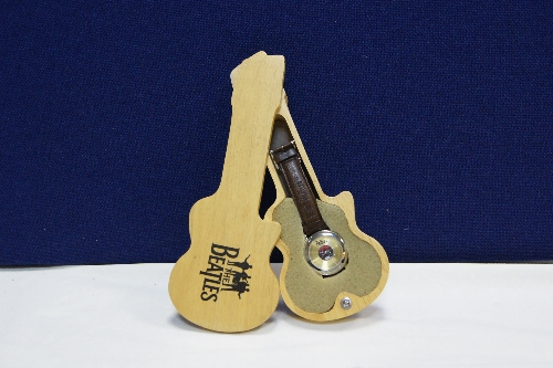 Beetles Watch Engraved On Back With Band Members Faces In Display Case |