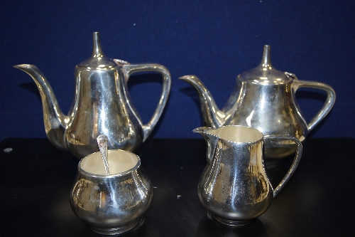 Silver plate tea set including - Tea Pot EPNS, Coffee Pot EPNS, Milk Jug EPNS, Sugar Pot EPNS With Spoon |